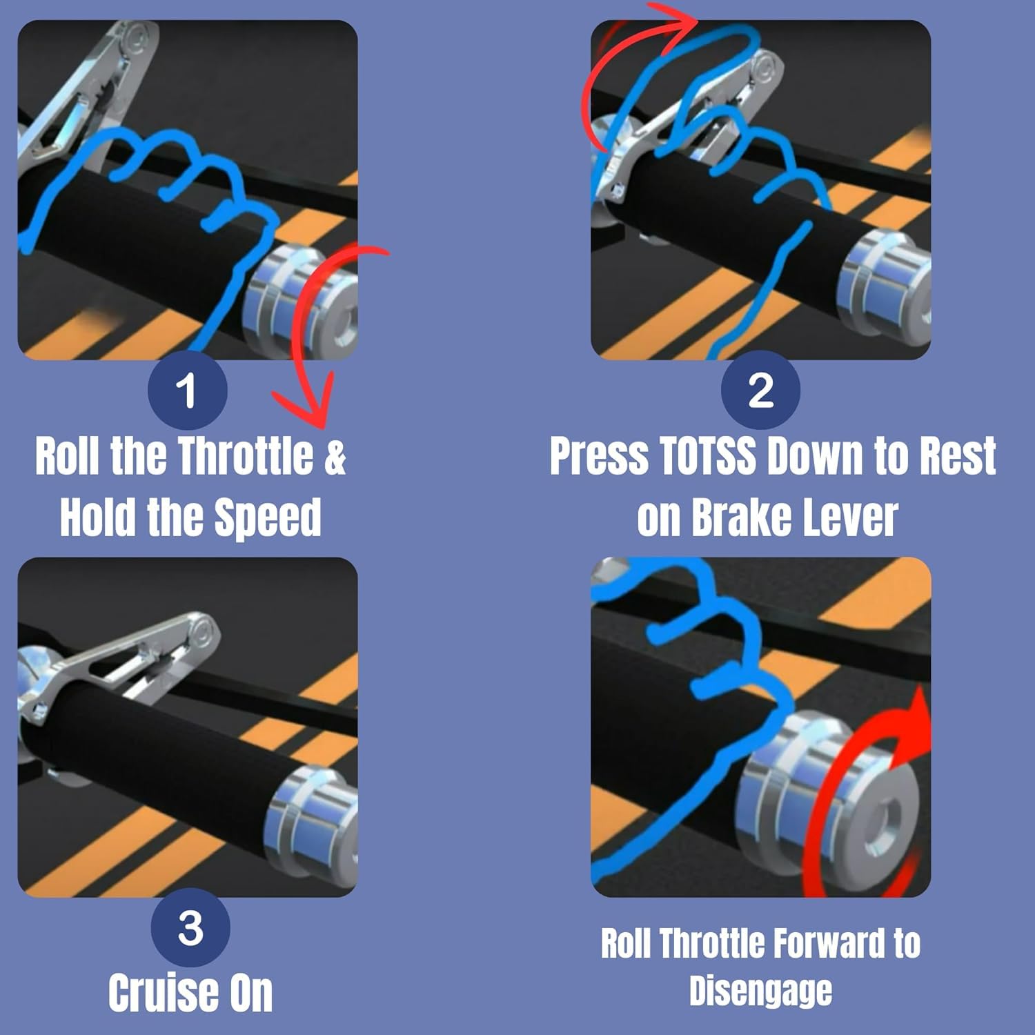 - SIMPLE & EASY-TO-USE - Install this throttle control on your bike in under a minute with these simple steps: 1. Slide the rubber ring (Included) onto the handlebar, 2. Attach the throttle lock, and 3. Lightly tighten. No tools or complex procedures needed.