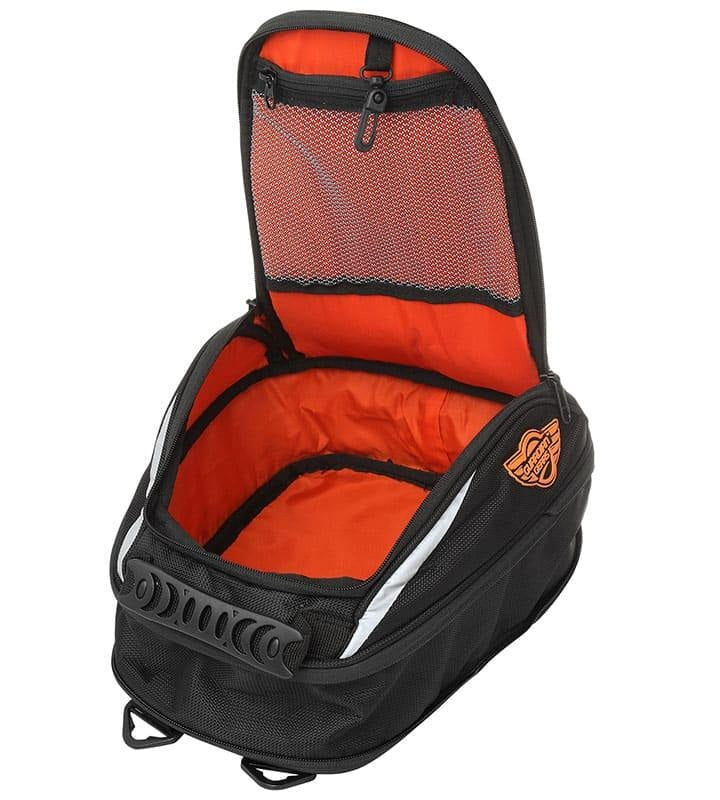 Guardian Gears Universal 18L Tank Bag, suitable for ALL MOTORCYCLES with Metal or Fiber Tank. Made from Industrial Grade, Highly Abrasion Resistant 1200 x 1200 Double PVC Coated Imported Nylon Fabric, Heavy Duty Fitting, High Tensile straps, Original YKK Zippers and YKK Pullers and 3M Scotchlite Reflective strip, for durability, rugged use and long life. Unique Quick Release Design makes is very easy for mounting the tank bag On and OFF the motorbike. One time mounting of straps required and after that just click In and Out without the hassle of managing the hanging straps as they will remain on the Motorcycle, unlike what is available in the market today? Comes with a Rubberized Rain Proof Cover for protection from rains. Capacity of this tank bag is 11ltrs Expandable to 18ltrs, for carrying quick access items, documents, snacks, and special Mobile Friendly Smart Phone Touch Sensitive pocket for ease of Navigation. One year warranty against any manufacturing defect.