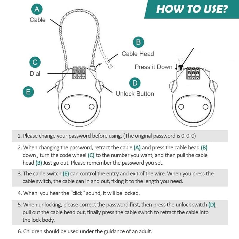 - Number Lock For Helmet Keeps things compact and easy to carry with the retractable coated steel cable.