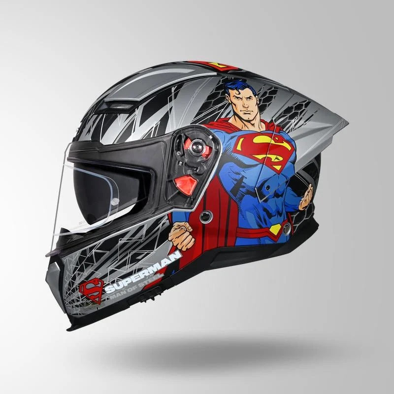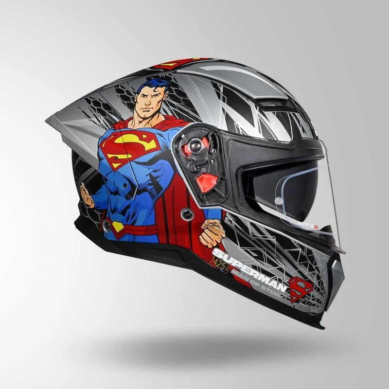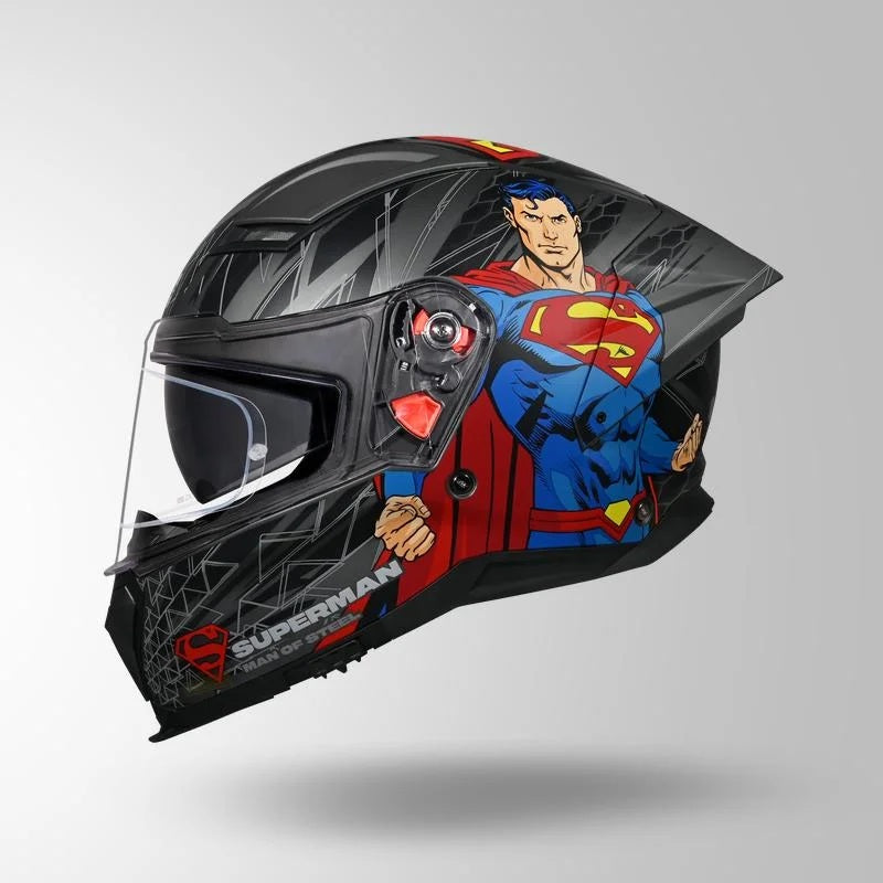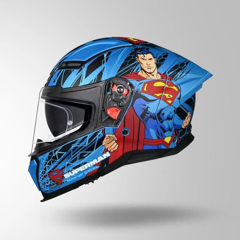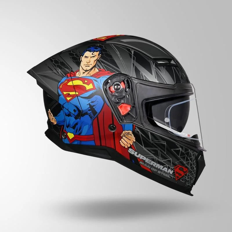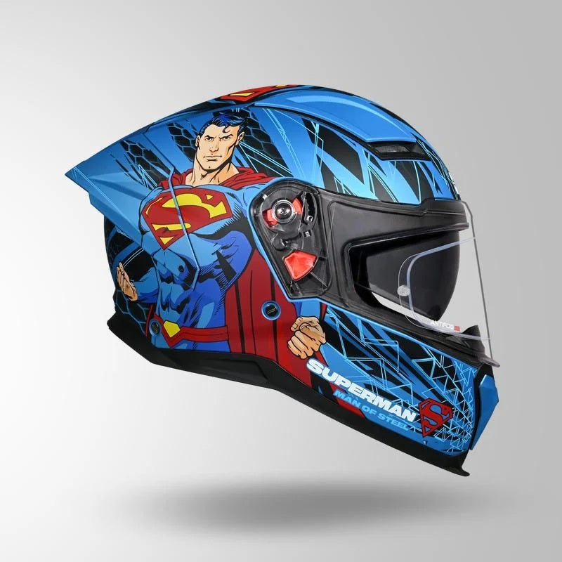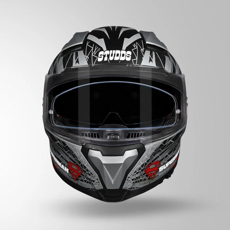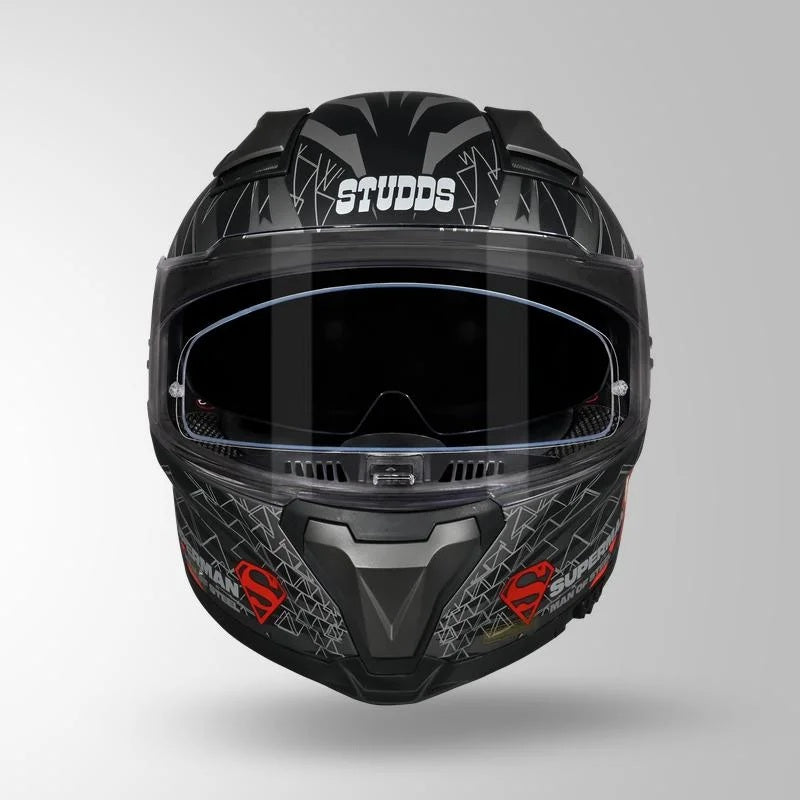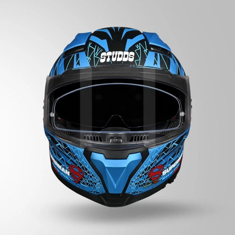 GUB STUDDS Helios Superman Edition Matte Finish Full Face Pinlock and Antifog ISI and DOT Certified Helmet with Dual Visor