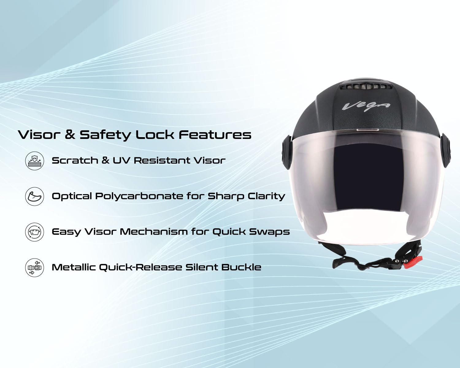 - Visor : Equipped with a scratch-resistant and UV-resistant optical polycarbonate visor, with an easy visor mechanism for smooth operation.
