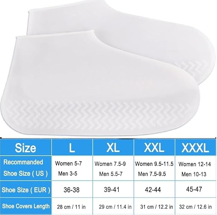 - EASY TO TAKE AND WEAR AND OFF : The shoe cover measures 29*17cm. High elastic silicone shoe cover can be flexibly stored in wallets or bags, does not take up space, easy to carry. Waterproof Shoe Cover Elastic material fits all shoes, easy to put on and remove, you can feel safe even against sudden rain.