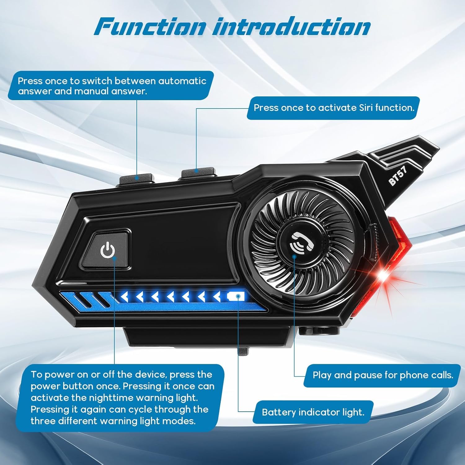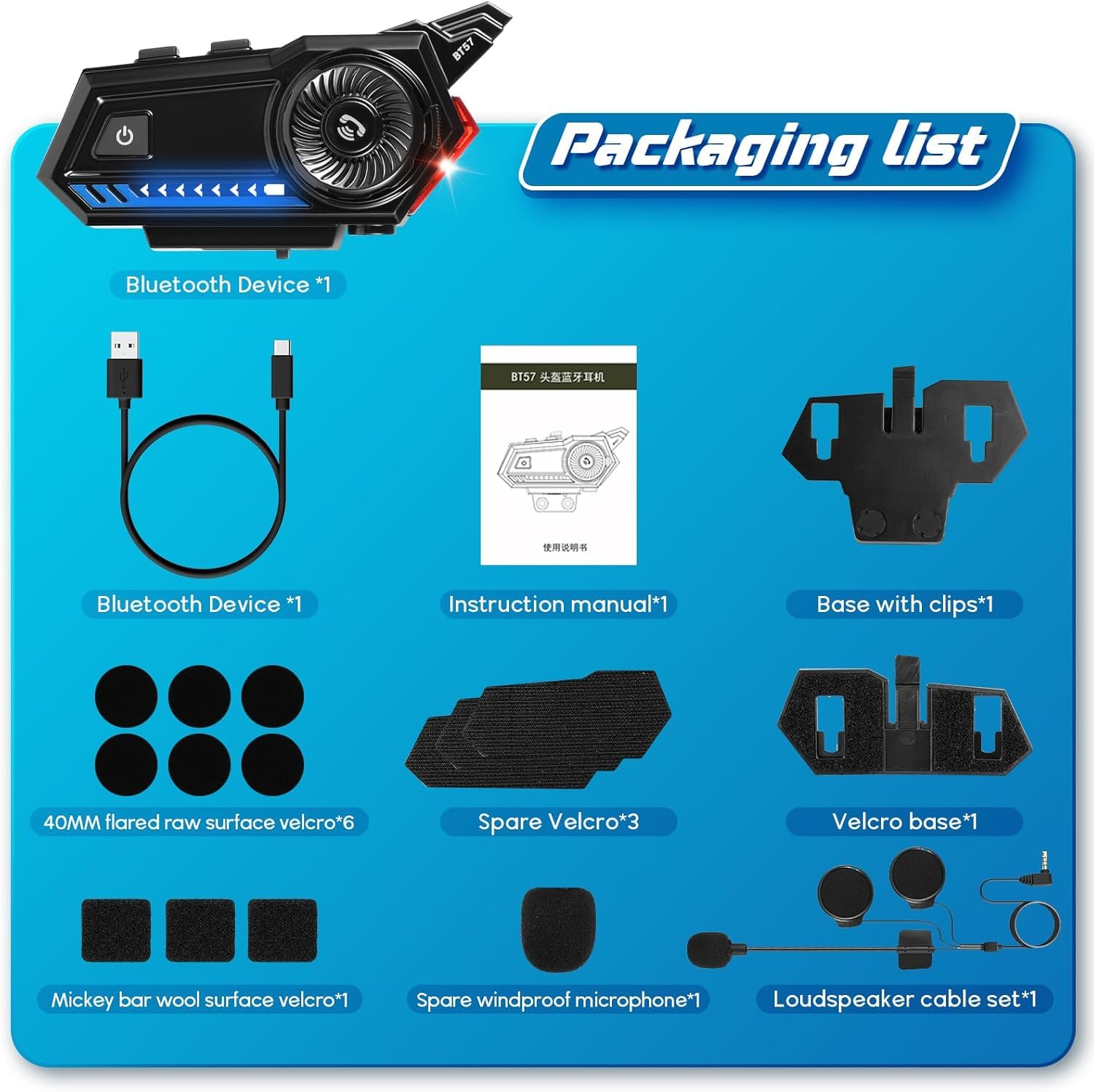 - BT-57 Motorcycle Helmet Headset : BT-57 adopts the latest 5.3 Bluetooth chip, using the latest 5.3 + EDR Bluetooth technology, super signal transmission low power consumption, spending all Bluetooth devices, support auto-answer function, no longer need to manually answer the phone when the call, safe and fast